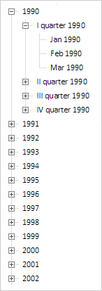 To execute the example, the HTML page must contain the DimTree component named dimTree (see Example of Creating the DimTree Component). Expand the first tree element. Expand the first element of the first element. Set if selected elements are expanded. Select all element of the second level: