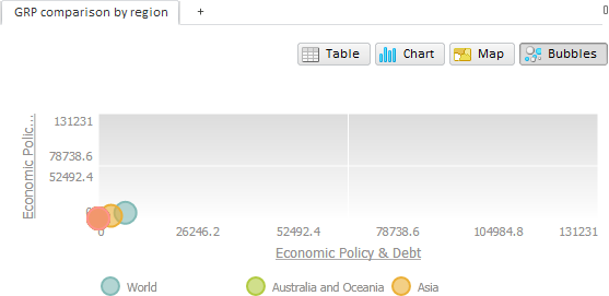 After executing the example the Bubble Chart button becomes active, and appropriate data view is loaded to the working area of the express report: