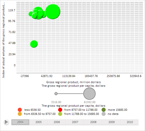 To execute the example, the HTML page must contain the component named bubbleChart (see Example of Creating the BubbleChart ComponentBubbleChart component named bubbleChart (see Example of Creating the BubbleChart Component). Color bubble chart bubbles in green: