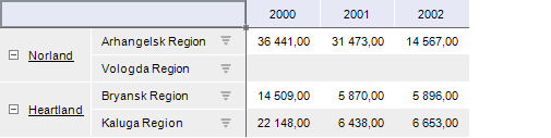 If at least one element is not filtered in the heading or sidehead of the last dimension hierarchy level, the entire level, to which this element belongs, is not filtered.