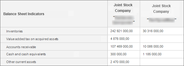 1. The Balance Sheet Indicators sidehead dimension.