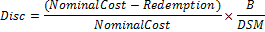 Disc(Settlement: System.DateTime; Maturity: System.DateTime; NominalCost: double; Redemption: double; Basis: integer): double;