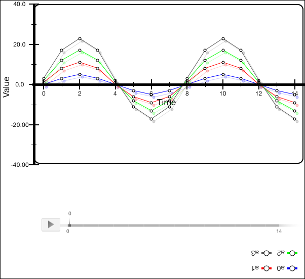 This example implements changing of color, width and rounding radius of chart borders, and also the following chart legebd properties: