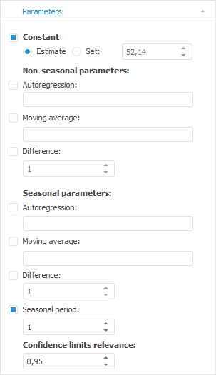Autoregression. By default this checkbox is deselected. If the checkbox is selected, the specified order of the non-seasonal or seasonal autoregression is taken into account.