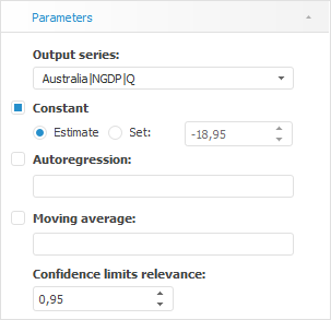 Confidence Limits Relevance. Set the importance level of confidence limits for a forecast series. Available values range: [0; 1]. The default value is 0.95.