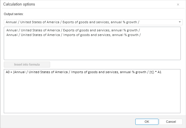 NOTE. The formula must contain at least one coefficient and one explanatory series, at least non-linear data transformation cannot be performed.