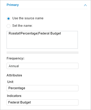 Set the Name. If the radio button is selected, the current name of the variable is displayed. Editable.