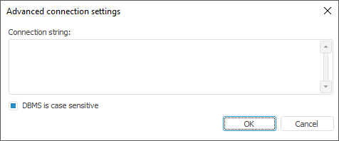 The advanced settings dialog box is opened by clicking the corresponding button on the Database Properties page: Advanced parameters set can be different according to the DBMS type.