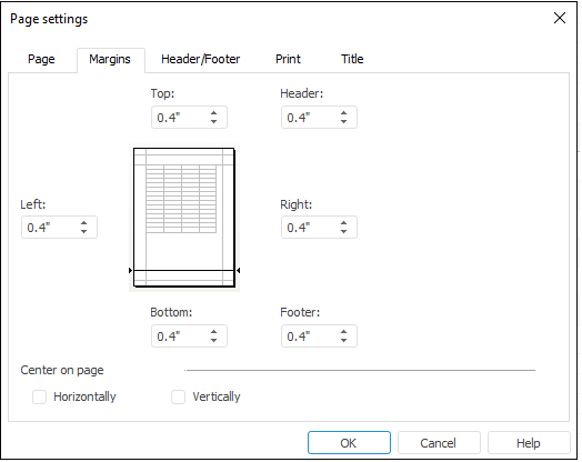 Select the method, according to which sheet objects are to be centered, in the Center on Page parameters group: