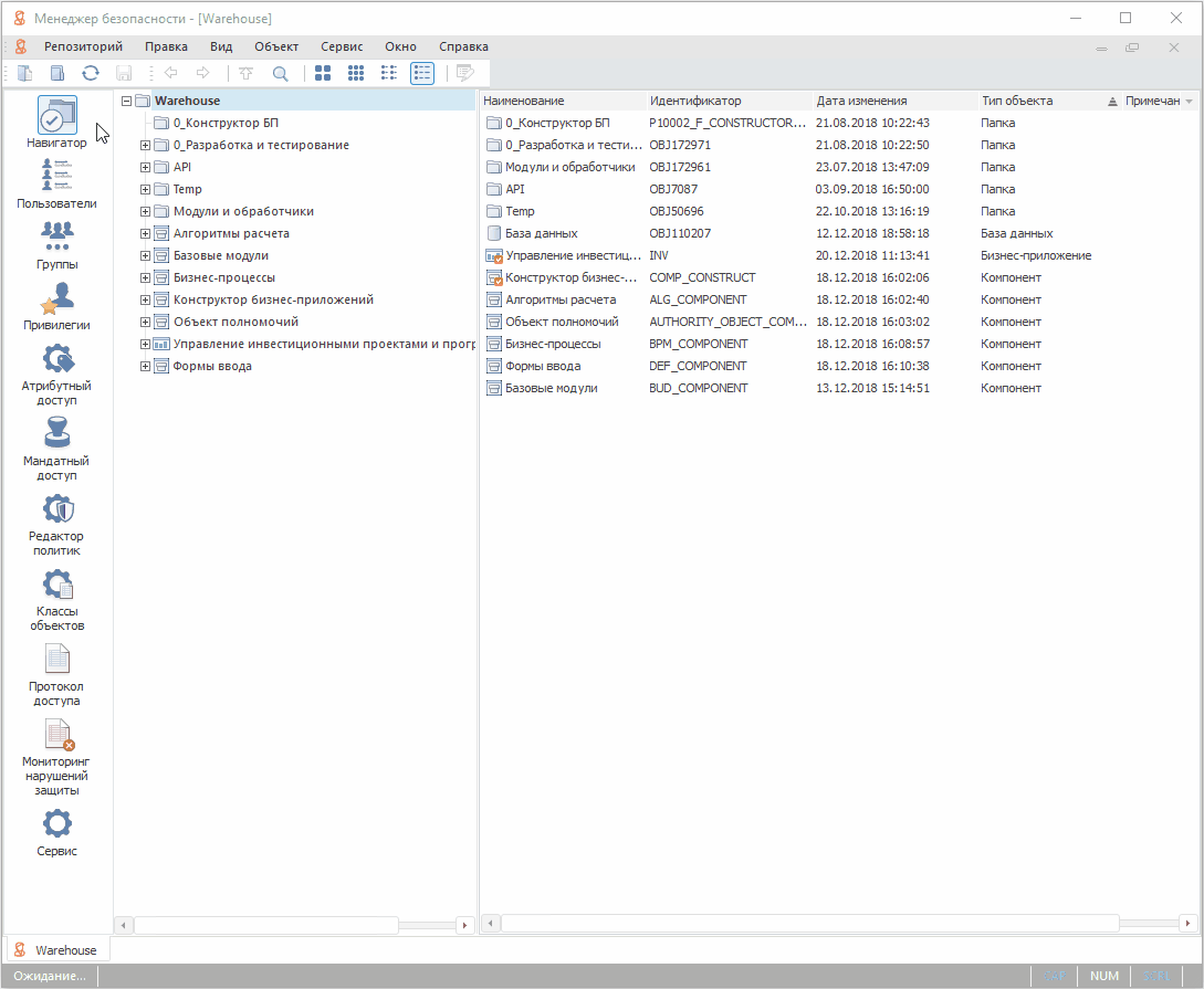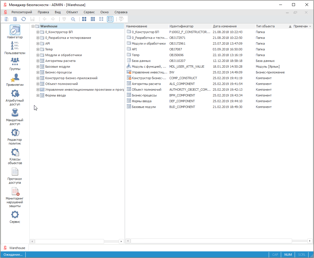 Откройте менеджер безопасности продукта «Форсайт. Аналитическая платформа».