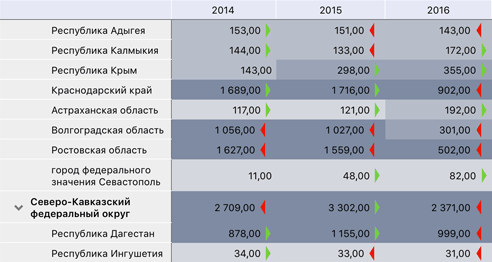 При повороте таблицы фиксированные измерения остаются на прежнем месте, а измерения, расположенные по строкам и столбцам, меняются местами. Порядок и отметка элементов измерений сохраняется.