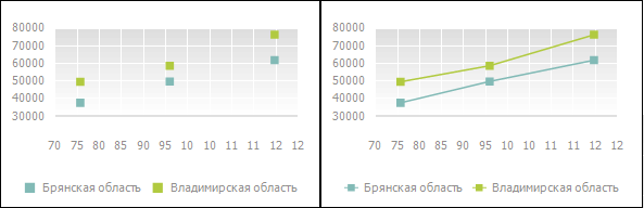 Пример отображения точечной диаграммы (точками и точками с соединительными линиями):