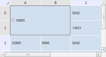 В результате выполнения примера были объединены ячейки в диапазоне (0, 0) - (1, 1), а сами диапазон был выделен: