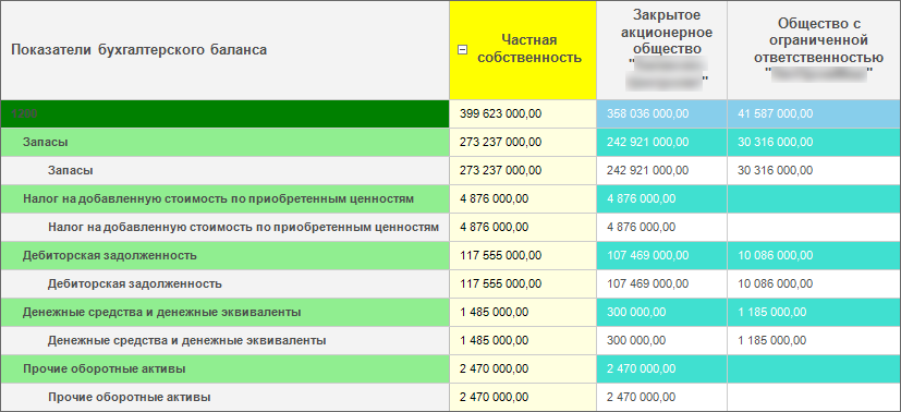 Продукт «Форсайт. Аналитическая платформа» позволяет группировать по атрибутам элементы измерений боковика или шапки. Значения группировочных элементов могут быть агрегированы.