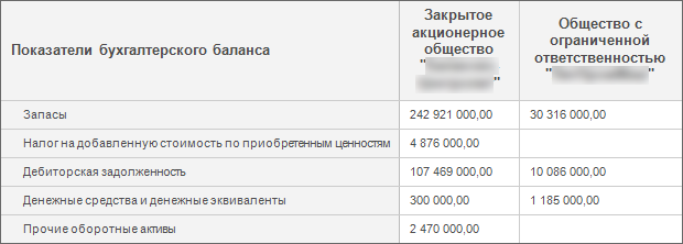 1. Измерение боковика «Показатели бухгалтерского баланса»;