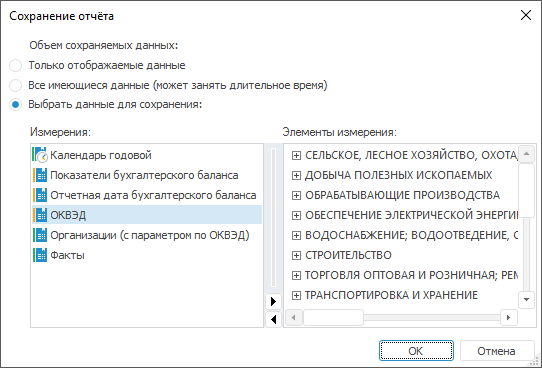Для экспорта нескольких вариантов отчёта, сформированных по отметке фиксированных измерений, используйте пакетный экспорт.