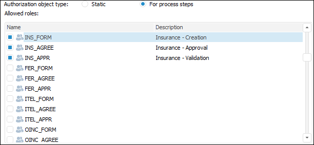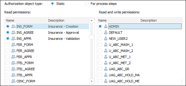 NOTE. The authorization object with dynamic access permissions must be specified on creating process steps.