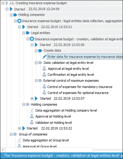 If authorization object and data entry form are used in the same process and their dimension selection matches, then select the checkbox to display steps of running process in processes tree of data entry form.