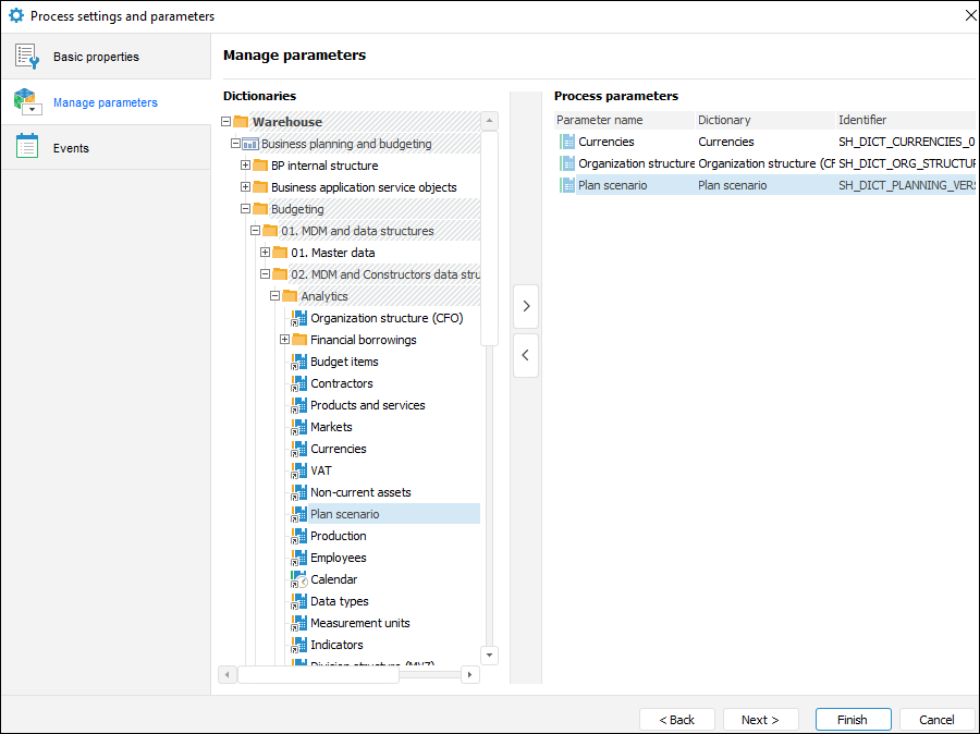 After executing the operations, the selected dictionary will be added to the process parameters list.
