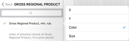 If the Metrics role is set for the dimension, to select the element, select the visualizer parameter, which should be controlled by the element: