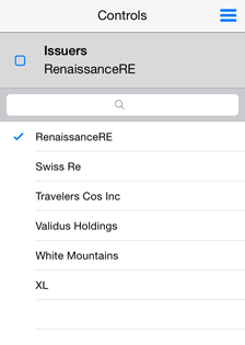 If on publishing a regular report source report parameters were specified, these parameters are available in the mobile application on the Controls tab: