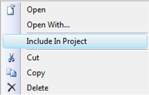 4.4. Go to the Properties dialog box and specify the Content value in the Build Action box, specify the Copy Always value in the Copy to Output Directory box: