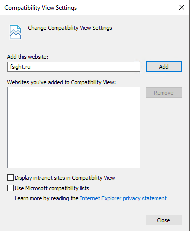 In the Tools menu of the browser, select the View Settings in Compatibility Mode item.