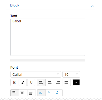 Use the Block tab on the side panel. The same parameters available for all dashboard objects are also available for a label. Additional settings are also available: