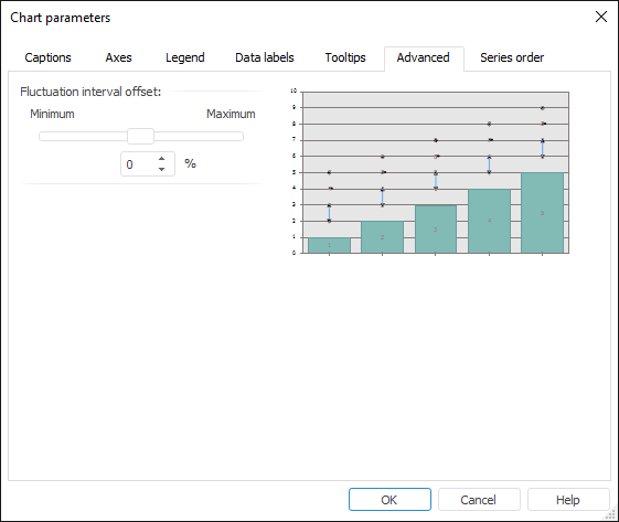 To set up additional parameters of mixed, pie, doughnut, waterfall charts, histogram, histogram with fluctuation intervals and bubble chart, go to the Advanced tab of the Chart Parameters dialog box.
