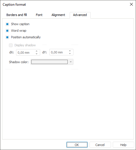 To set up additional parameters of caption format, go to the Advanced tab of the Caption Format dialog box. The setup is available only in desktop application.