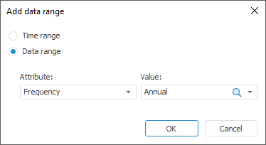 Data Range. Select an attribute and its values in the Add Data Range dialog box:
