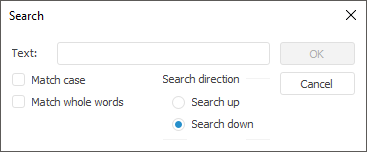 Match Case. Select the checkbox to determine case sensitivity of identifier or name entered in the Search box.