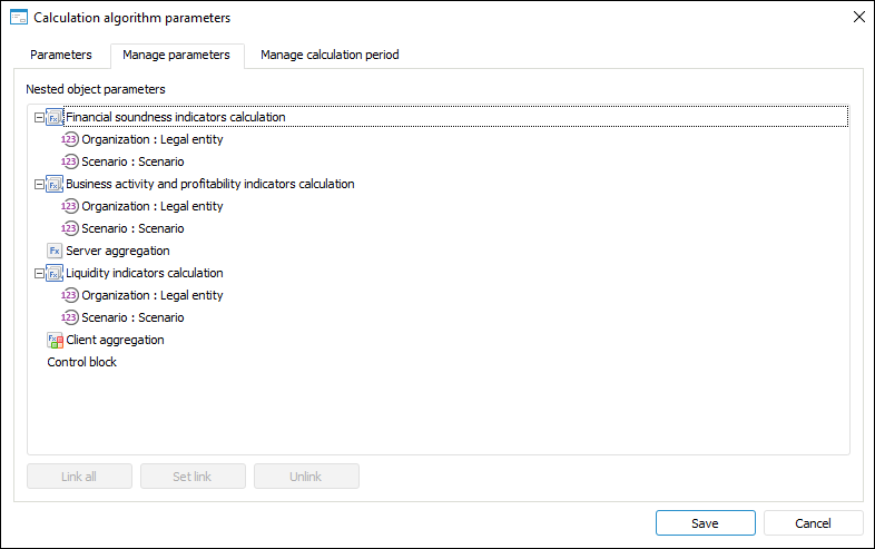 As a result, the calculation algorithm parameter will be linked with the block parameter. Set links for all block parameters.