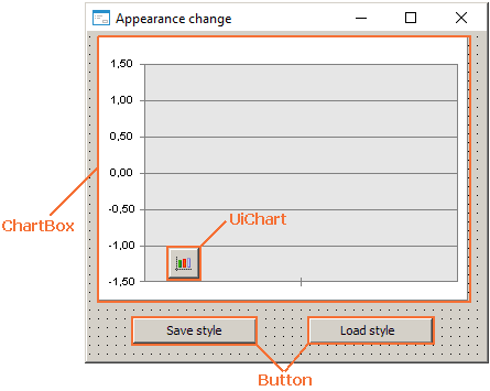 Create a form and place the components on this form: UiChart, ChartBox, and two Button components.