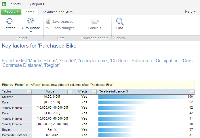 The web application enables only viewing analysis results as a regular report. Analysis results are opened on a separate tab that is similar to the tab with analysis results in the desktop application: