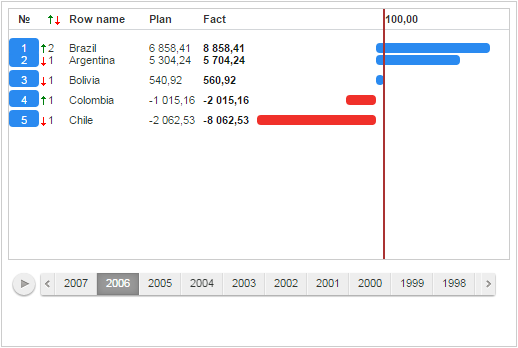 Executing the example requires that the page contains the RatingChart component named ratingChart (see Example of Creating the RatingChart Component). Go to the second step of time line, after it display position change animation and graphic of the first data series: