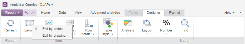 // Get view of the Table tab var category = expressBox.getRibbonView().getTableCategory(); // Get object with settings var menu = category.getChartEditingMenu(); // Display menu menu.showContext(100, 80);