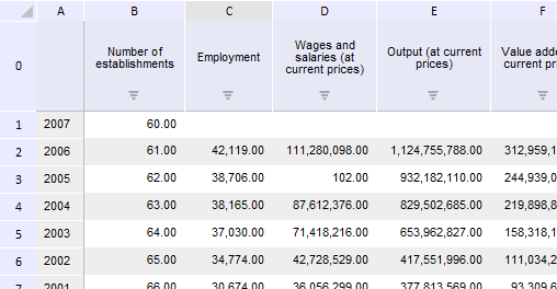 Executing the example requires that the HTML page contains the ExpressBox component named expressBox (see Example of Creating the ExpressBox Component) and have a loaded table in express report working area. This table may look as follows: