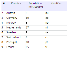 To execute the example, the HTML page must contain the DataGrid component named grid (see Example of Creating the DataGrid Component). Add handlers for delete row events and delete the first two rows: