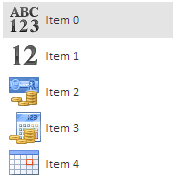 Elements of the list are instances of ListItem and IconListItem components. The list may contain icons as it is shown on the picture above. Icons are contained in the file the address of which is specified in parameters of the ImageList non-visual component.
