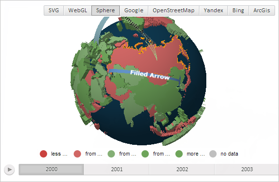 To execute the example the HTML page must contain the MapChart component named map and the ). A map with the Sphere topobase must also be loaded (see the page with description of the MapChart.AmbientLightValue propertyToolBar property named MapType (see Example of Creating the MapChart Component). A map with the Sphere topobase must also be loaded (see the page with description of the MapChart.AmbientLightValue property).