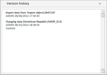 HistoryWindow is a visual component that displays a window with the values history of a selected series.