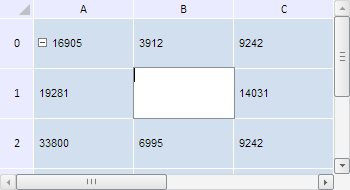 To execute the example, the HTML page must contain the TabSheet component named tabSheet (see Example of Creating the TabSheet Component). Enable editing cell range, and start editing a cell under coordinates (1, 1):