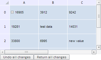 To execute the example, the HTML page must contain the TabSheet component named tabSheet (see Example of Creating the TabSheet Component). Change values of two cells, next show type of executed commands, old and new cell values. Add two buttons that will undo all changes and redo all changes: