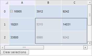 To execute the example, the HTML page must contain the TabSheet component named tabSheet (see Example of Creating the TabSheet Component). Select cell range B1-C2 and add a button that clears selection from selected table areas: