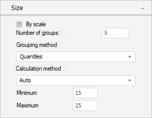 The Size tab in the express report bubble chart wizard looks as follows:
