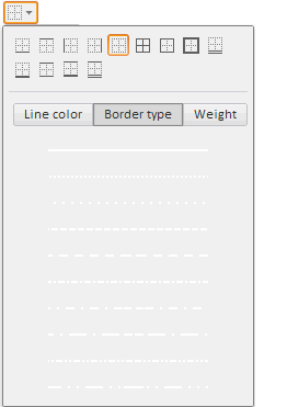 To execute the example, in the HEAD tag add links to PP.js component library, to PP.css visual styles , and a resources file (such as resources.en.js). Seebelow the JavaScript code given to create the BorderCombo component. The item with the bc1 identifier must be available in the DIV tag.