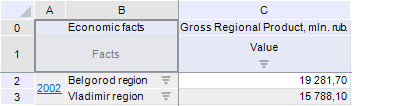| 2 | Rows. Dimensions names in rows from sidehead. |