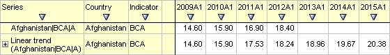 LnDataDisplayType.CalculatedValues. Calculated values of the series are displayed in the workbook: