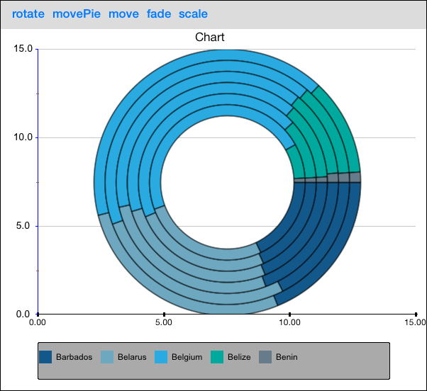 This example describes creating of a pie chart with configured animation. The buttons are created for animation playback: